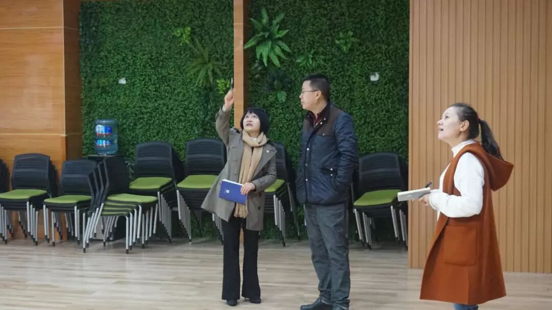 在彭丽园长的陪同下,吴边组长一行实地查看了两所园幼儿园户外环境、班级教室、厨房、多媒体会议室等场所;随后,一行人就“幼儿园办园情况”“幼儿安全保障措施”“园所品牌建设”等方面进行了现场交流。吴边组长在肯定万幼工作的同时也鼓励万幼继续发扬领导班子带头作用,将幼儿园特色活动、亮点工作进一步挖掘,打造出富有特色的高品质幼儿园。吴边组长在肯定万春镇中心幼儿园整体风貌的同时对作为新建园的万春镇第一幼儿园大区域环境打造设计提出了建设性的建议。