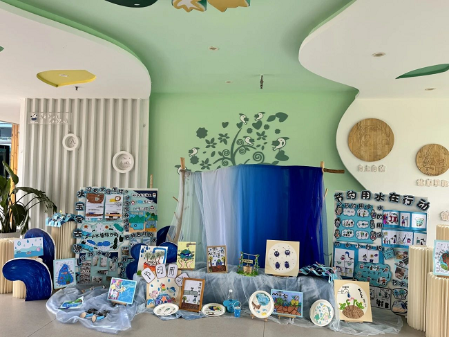 教师们精心打造“节水宣传展”,通过图文并茂的海报、生动有趣的节水标语和水资源科普图片,向幼儿直观展示水资源现状及节水小窍门。