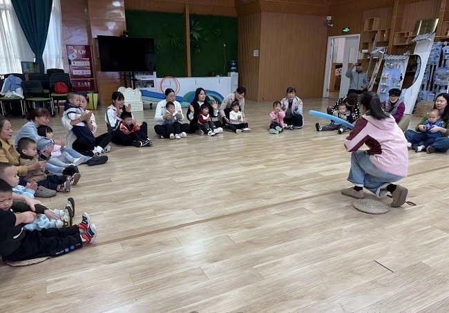 熟悉旋律悠然响起,屈老师手里的魔法棒给每个孩子施了快乐的魔法。稚嫩的动作应和着轻快节拍,随着咿呀咿呀哟的旋律摆动着、躲避着,如同一群欢快的小云雀在秋日的晨光中歌唱。在这片音乐的海洋里,每个孩子都是跃动的音符,用最纯真的方式感受着韵律之美。